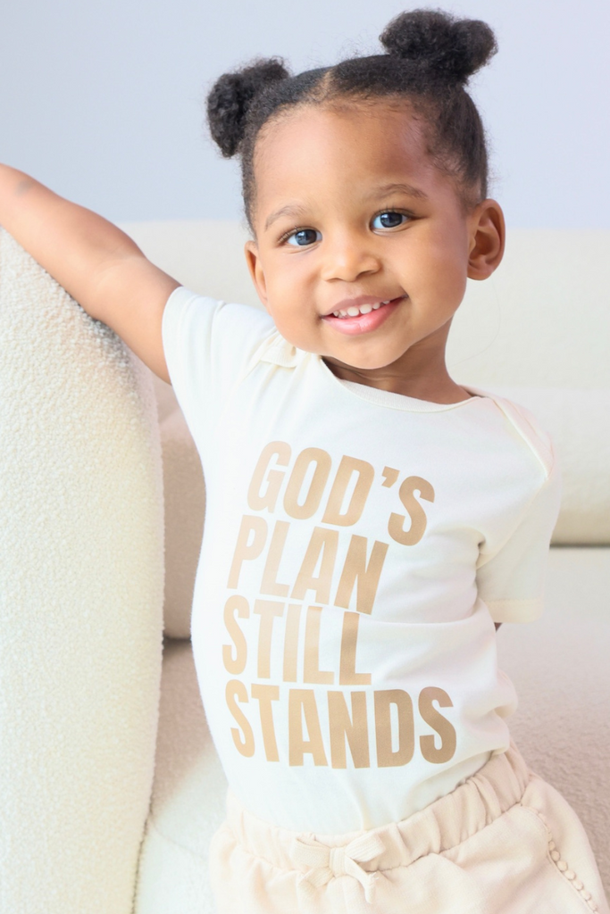 Let your little ones wear the message with just as much purpose. This children’s version of our bestselling “God’s Plan Still Stands” tee is designed to pair beautifully with the adult espresso shirt while offering a look made just for them.